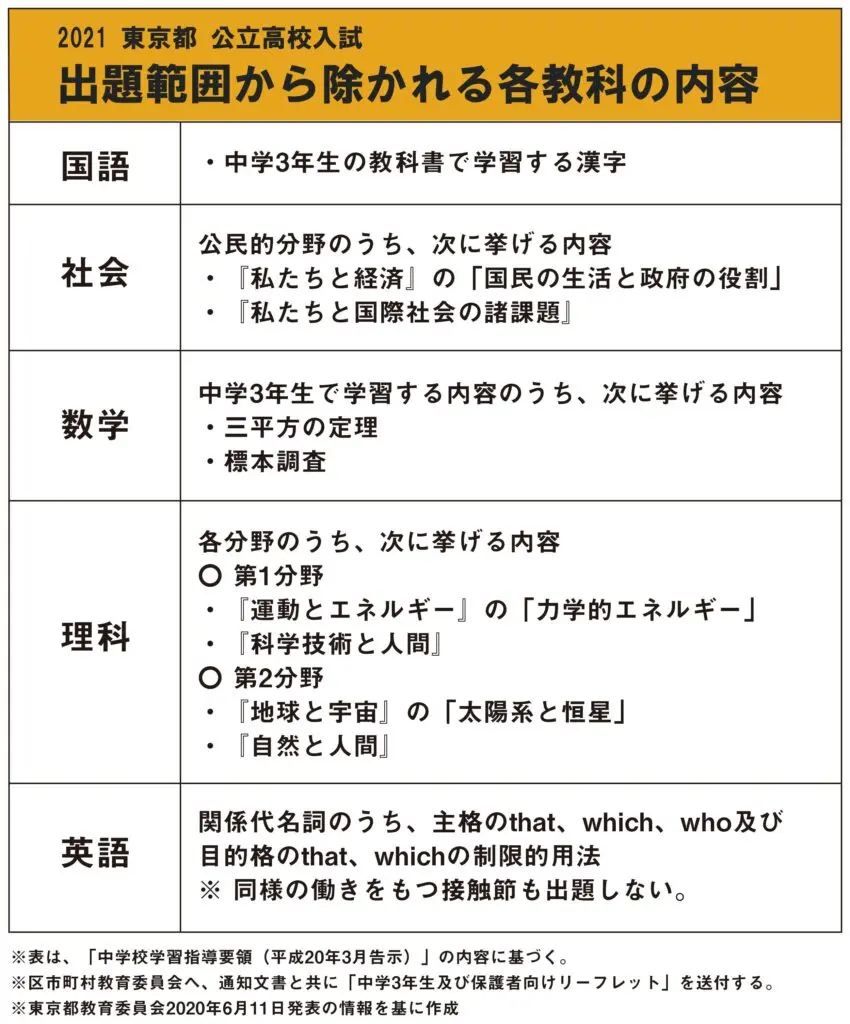 <コロナの影響>【2021 高校受験】首都圏(東京/千葉/埼玉)公立高校入試の出題範囲の配慮事項が発表!
