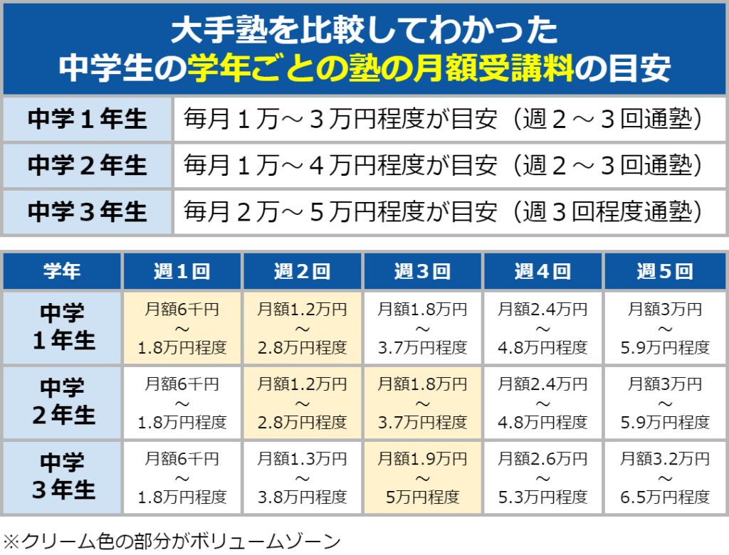 中学生の塾の費用は毎月1万~5万円が相場|年額・通塾回数も解説