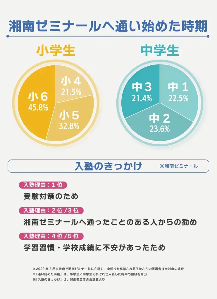 塾へ通う学年で多いのは?/統計と保護者のリアルな声 ― 差がつくのは、中学生での成績 !? ―|湘南ゼミナール