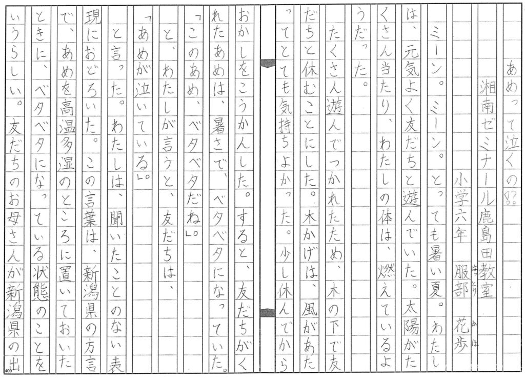 小学生が綴る言葉「あめって泣くの?」/作文 湘ゼミ大賞 最優秀作品 ~鹿島田校~