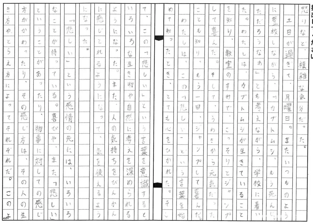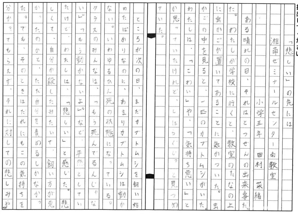 小学生が綴る言葉「悲しい」の先には/作文 湘ゼミ大賞 優秀作品 ~センター南校~