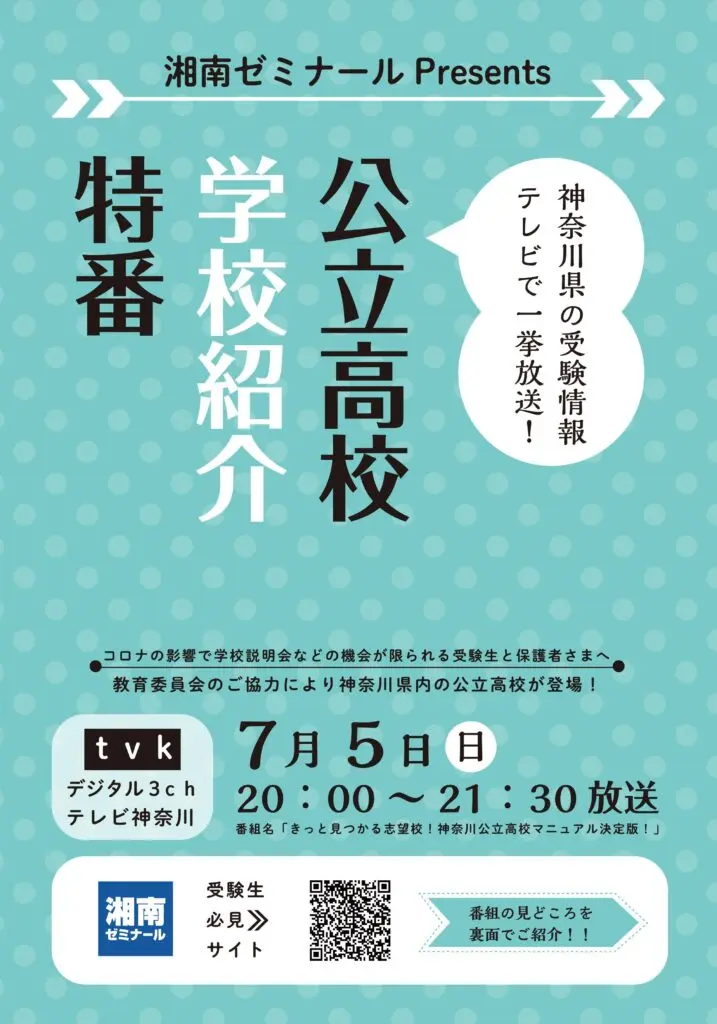 受験生必見!7月5日(日) tvk (デジタル3ch) にて神奈川県 公立高校出演の特別番組を放送! 学校情報をテレビでお届け!|湘南ゼミナール