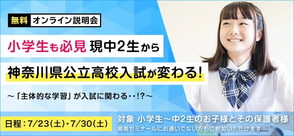 【総合進学コース】 7/23(土) 開催!無料オンライン説明会「現中2生から神奈川県公立高校入試が変わる!~主体的な学習が入試に関わる!?~」のお申込み受付中!|湘南ゼミナール