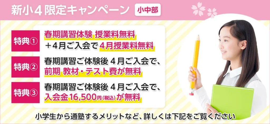 【総合進学コース】スタートダッシュを応援します!新小4限定キャンペーン受付中!|湘南ゼミナール