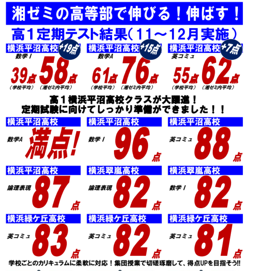 高1定試験結果!(高等部横浜校の結果です)
