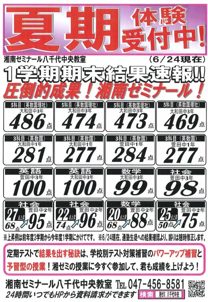 2022年 1学期期末テスト 八千代中央圧倒的成果