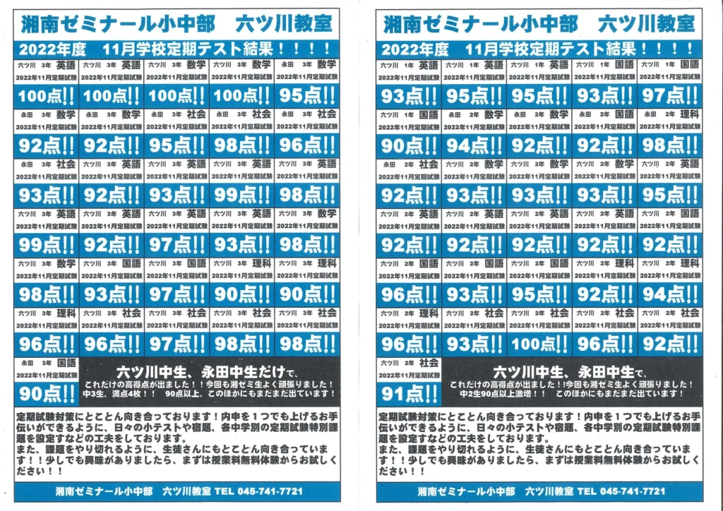 ≪六ツ川地域No.1の塾を目指します!≫後期中間結果②!!