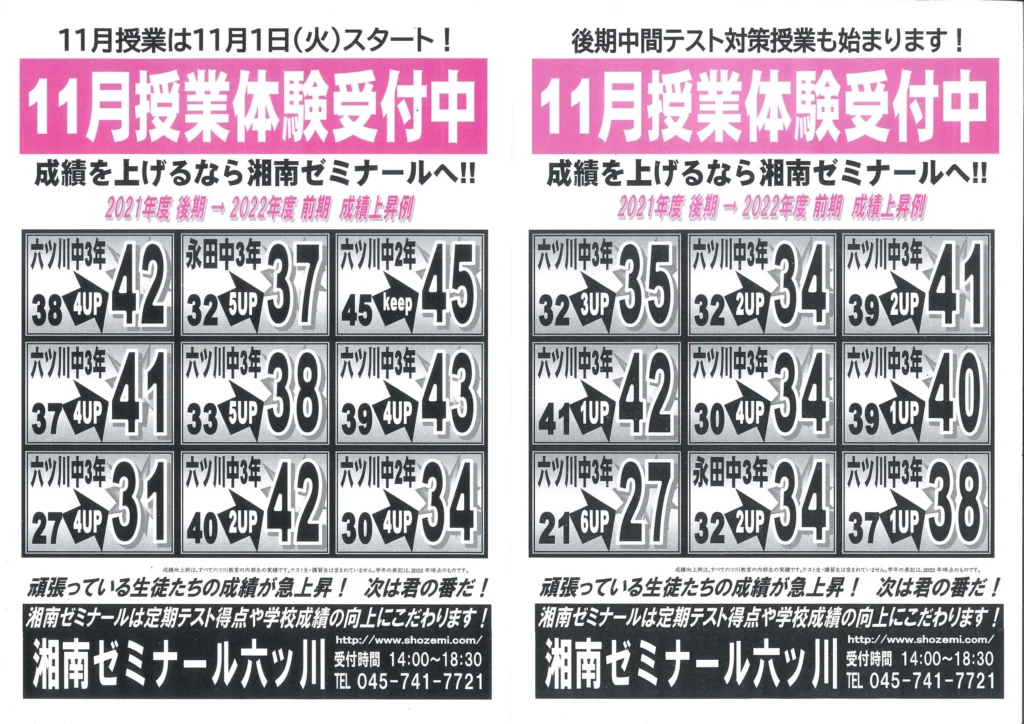 ≪六ツ川地域No.1の塾を目指します!≫2022年度前期内申結果!