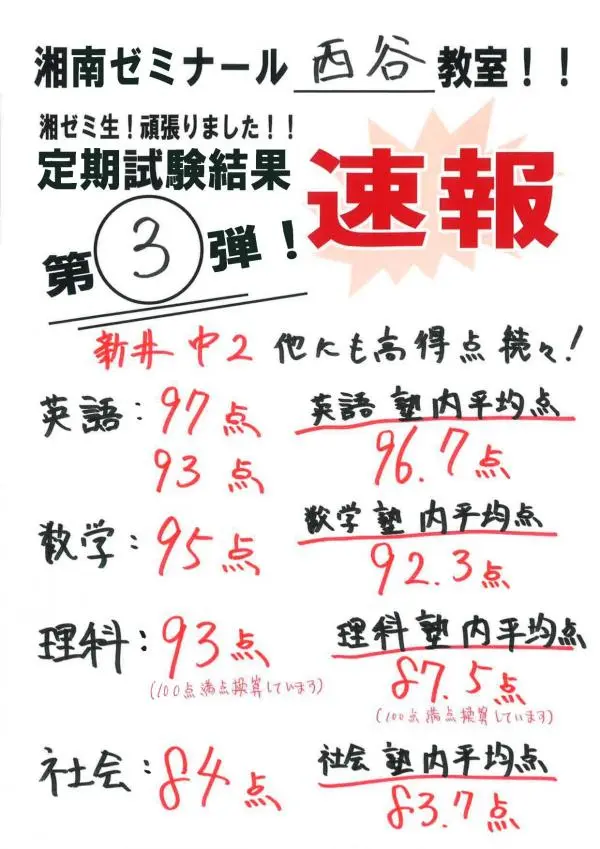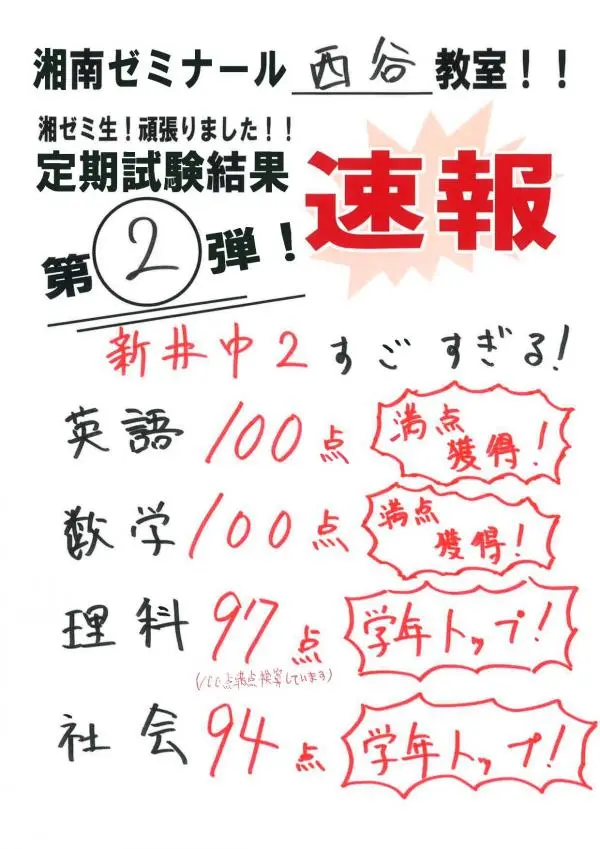 新井中前期中間試験結果第2弾!第3弾!