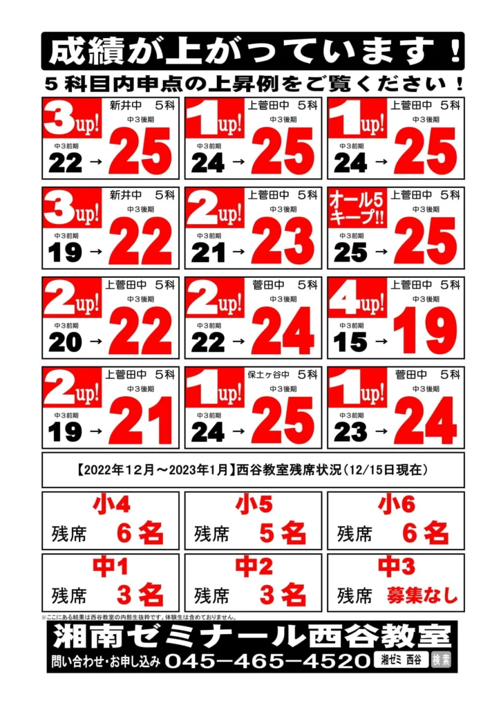 西谷校の成績アップ事例