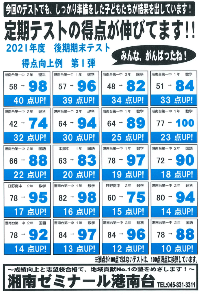 【2021年度後期期末/3学期期末テスト結果!得点UP.ver第1弾!】
