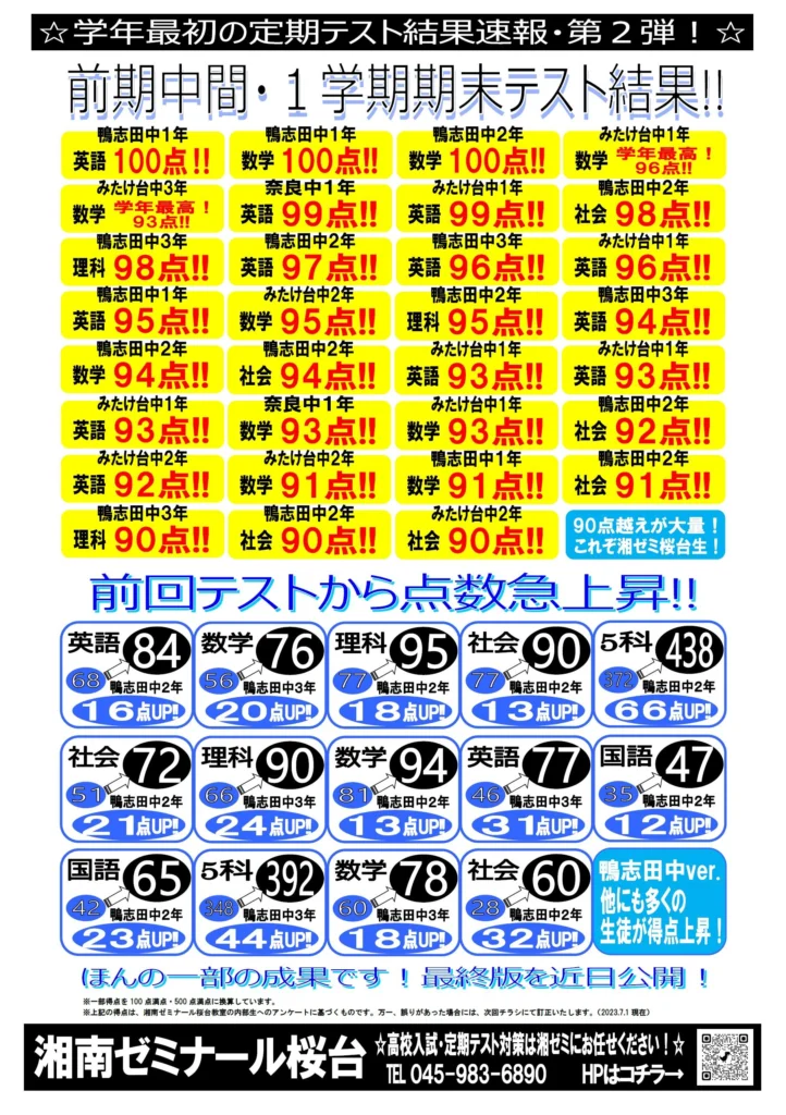 【速報第2弾!】前期中間・1学期期末テスト結果