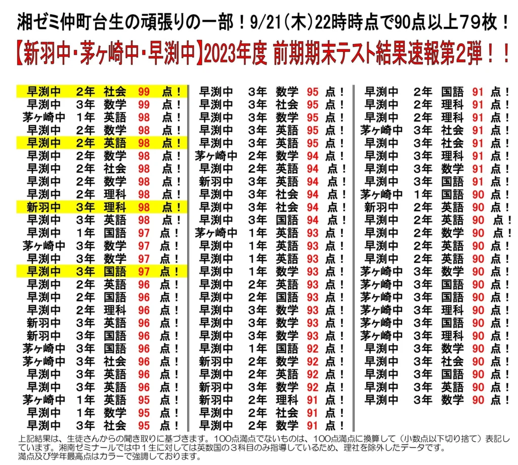 【茅ヶ崎中・新羽中・早渕中】2023年度前期期末テスト結果!!(9/21更新)