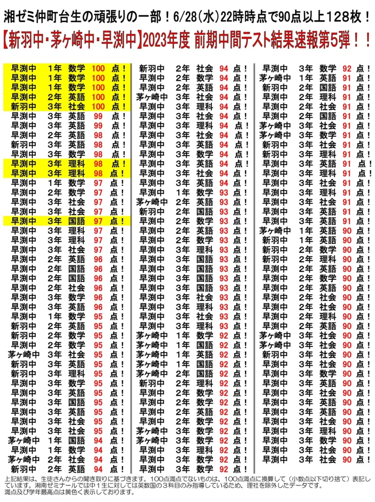 【新羽中・茅ヶ崎中・早渕中】2023年度前期中間テスト結果!(6/28更新)