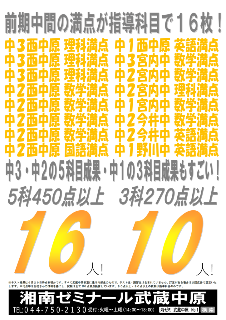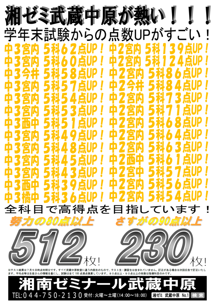 武蔵中原校の成績アップ事例