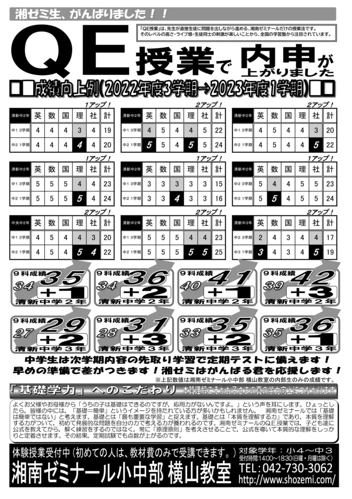 令和5年(2023年)7月 2023年度1学期学校成績向上例 横山教室