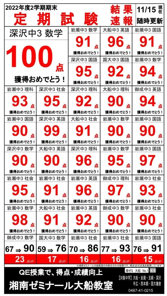 2学期期末 定期試験結果速報!💮 11/15更新!