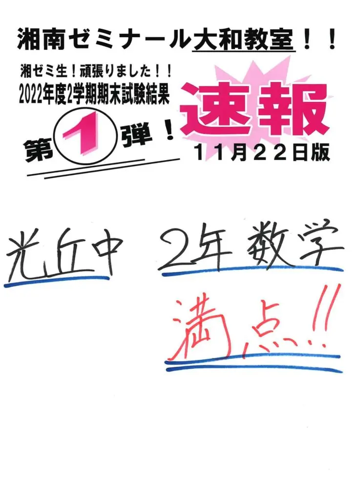 【速報】2学期期末試験結果_第1弾