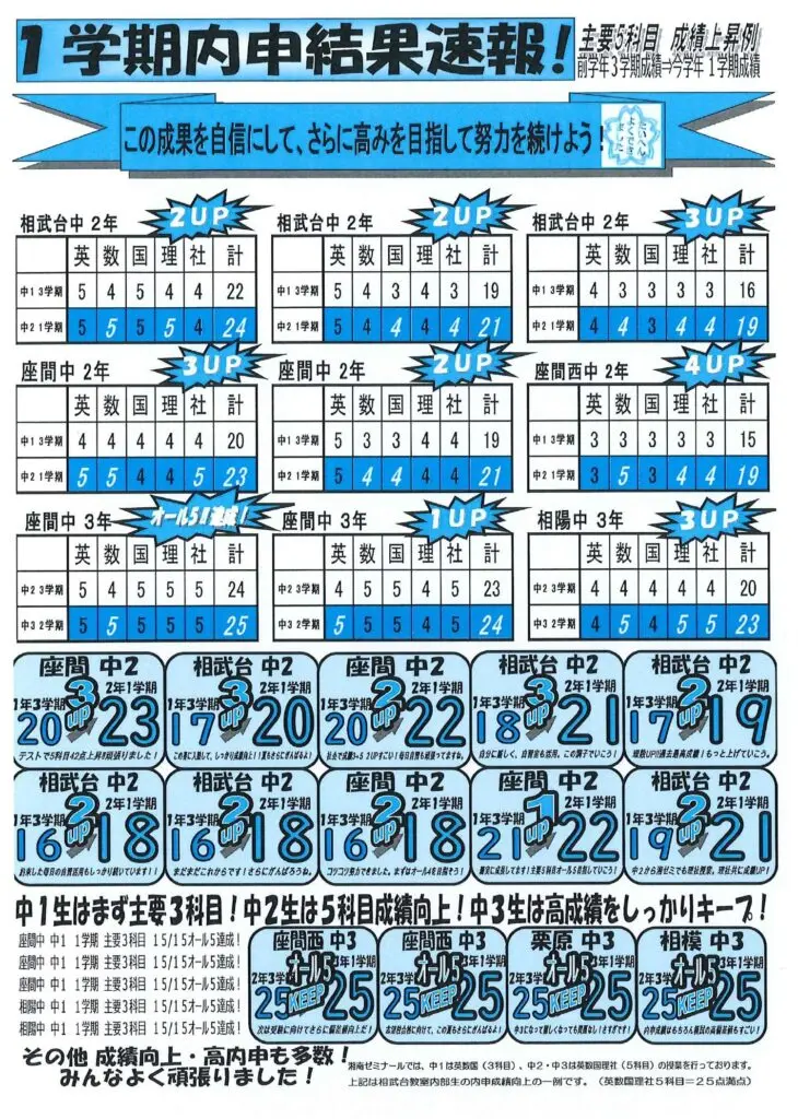 【NEW】2022 1学期内申成績 成績向上結果!!
