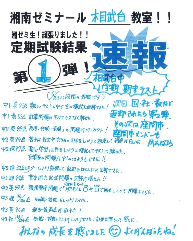 ★2022年度 1学期中間(5月)1学期期末(6月)テスト結果★